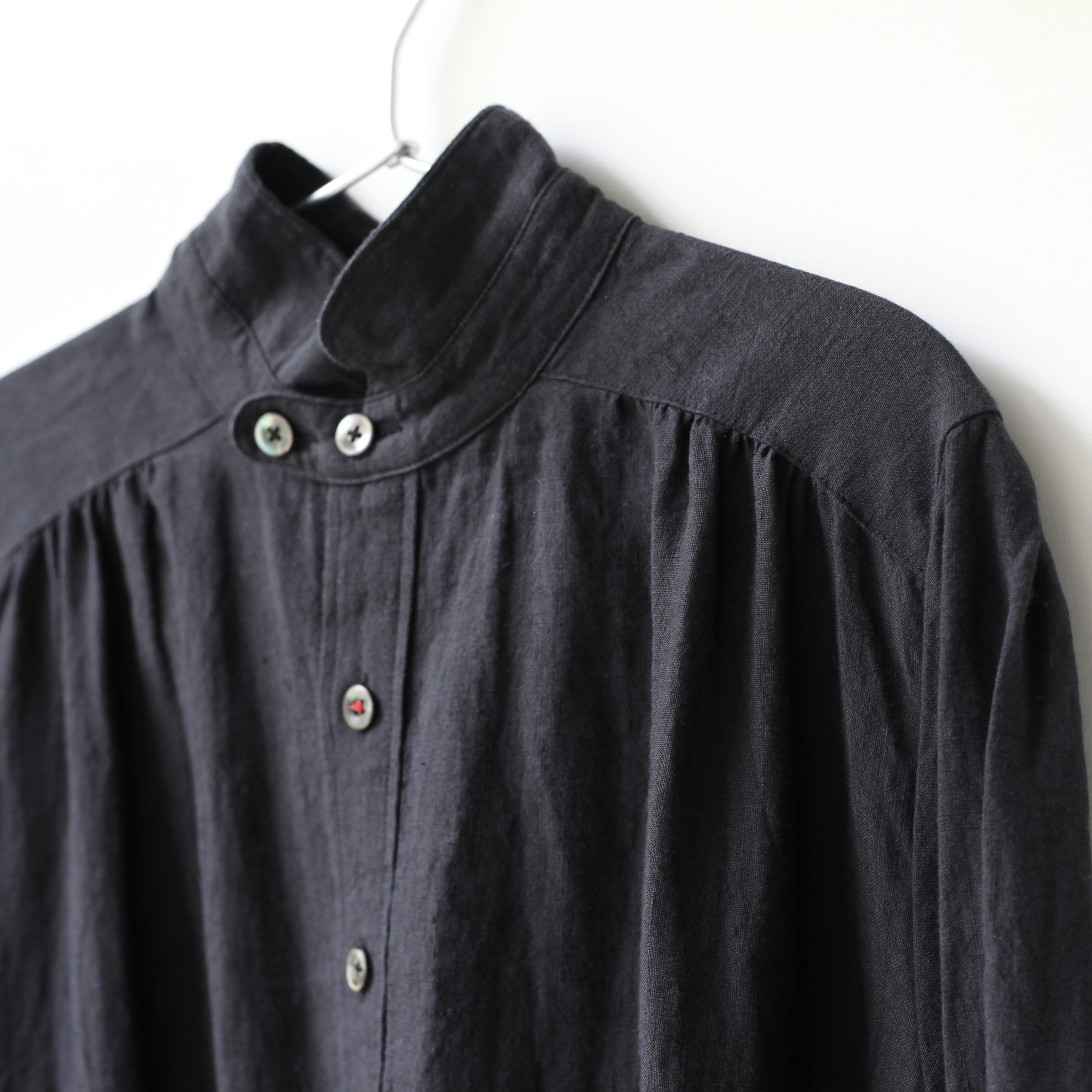 T-171小領前褶長袖OP棉麻(黑)
