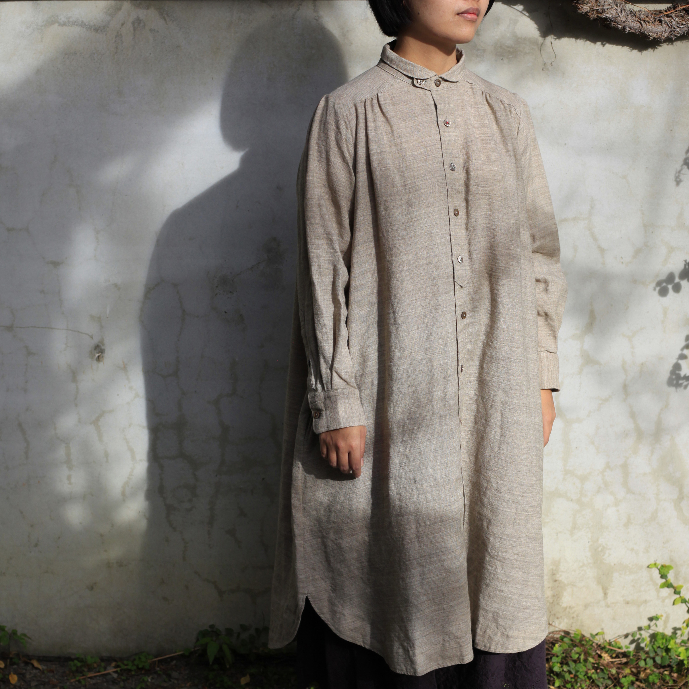T-171小領前褶長袖OP棉麻(米白)