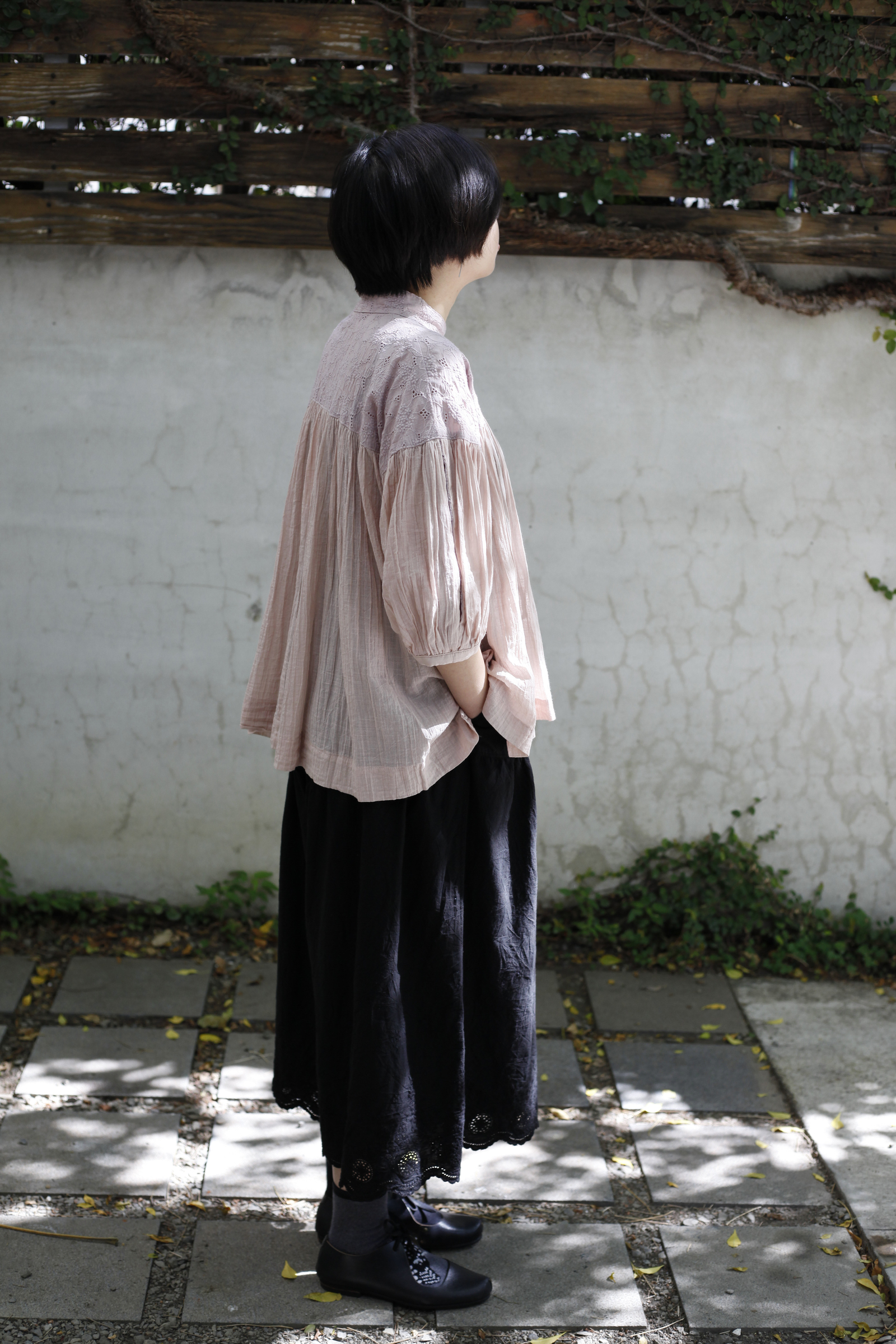 Sa-Rah 2024新裝_T-141sN 有摺罩衫五分袖(刺繡粉紅)