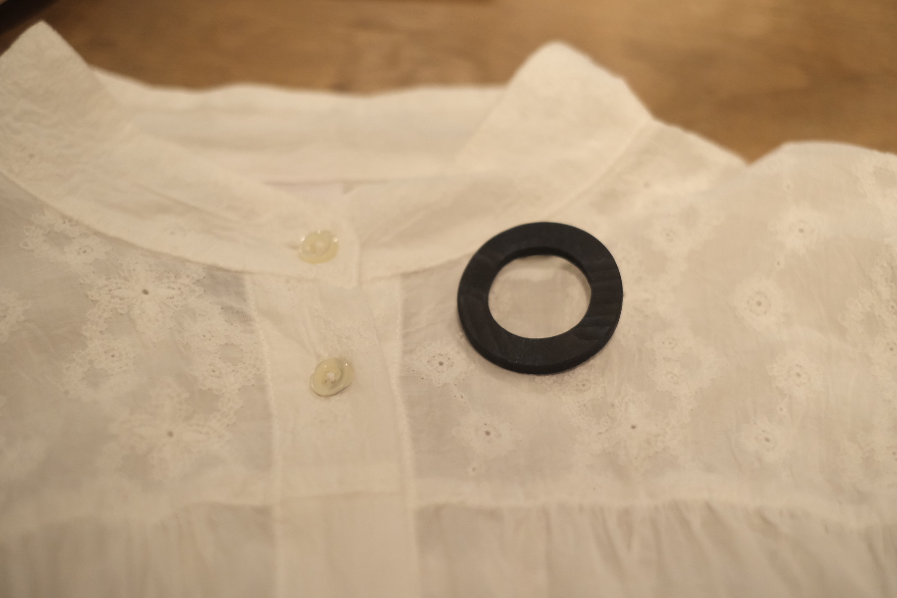安藤由紀|輪狀胸針(櫻木 藍染白樺木)