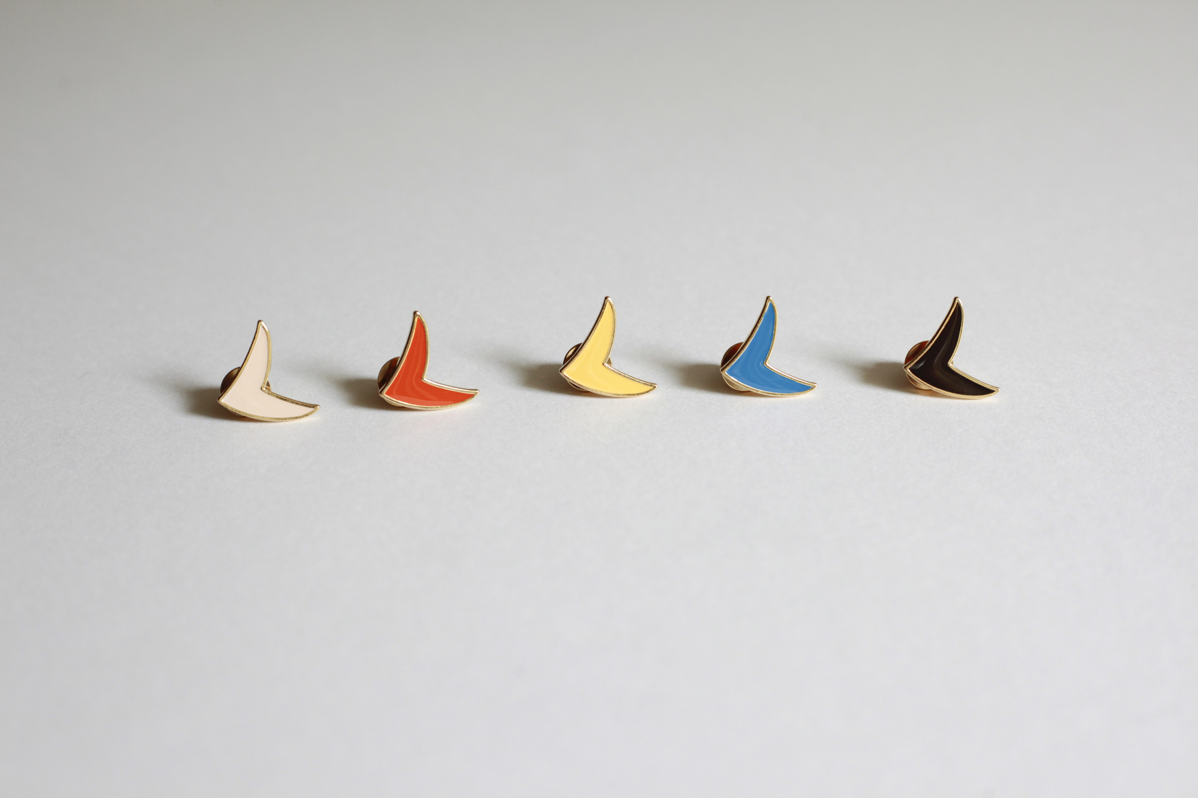 八隻彩色 渡鳥的小徽章。不僅可以單一選擇配戴,也能以自己喜歡的幾種顏色排列、或根據當天的心情和穿搭來選擇組合,是一種可以從其中得到不同樂趣的商品。