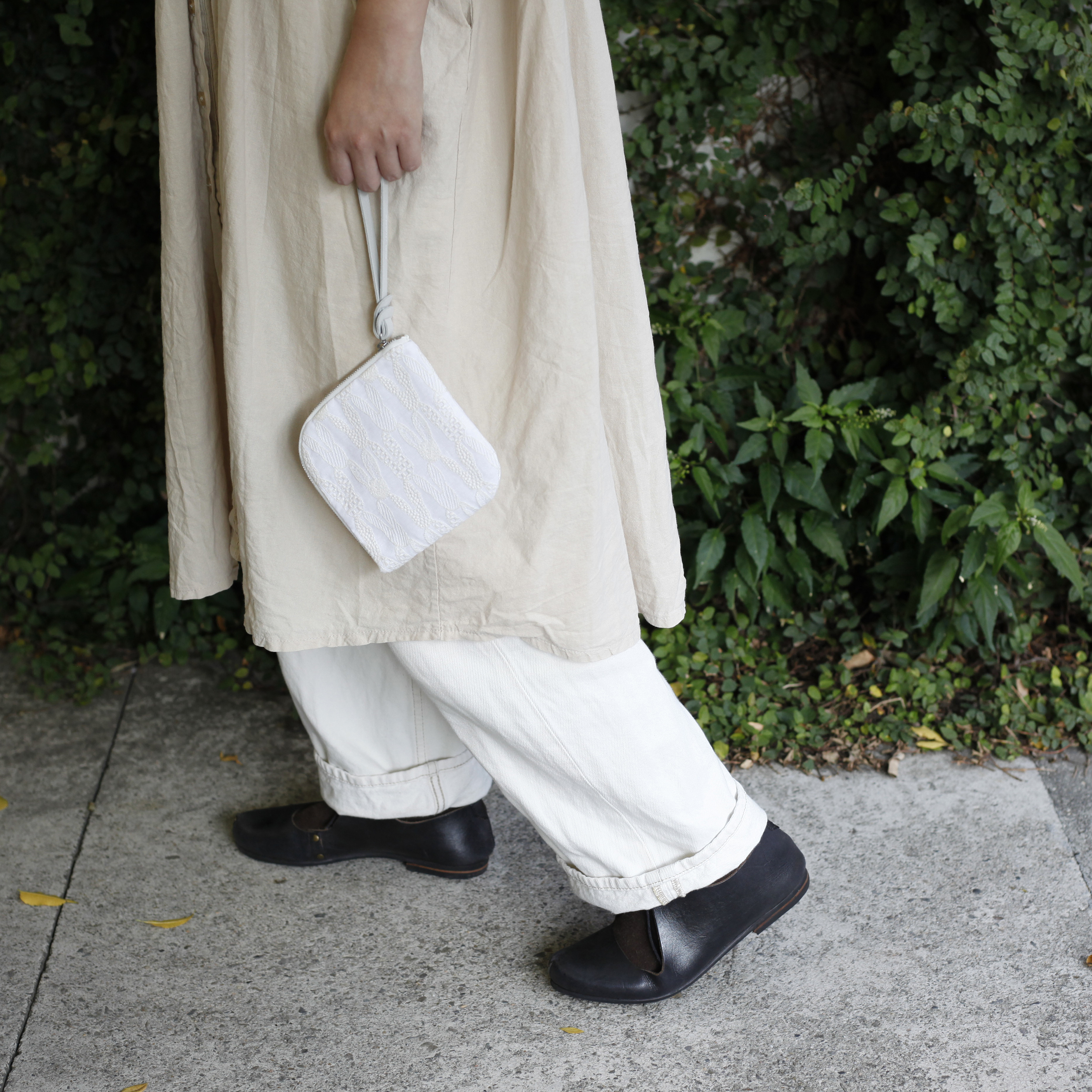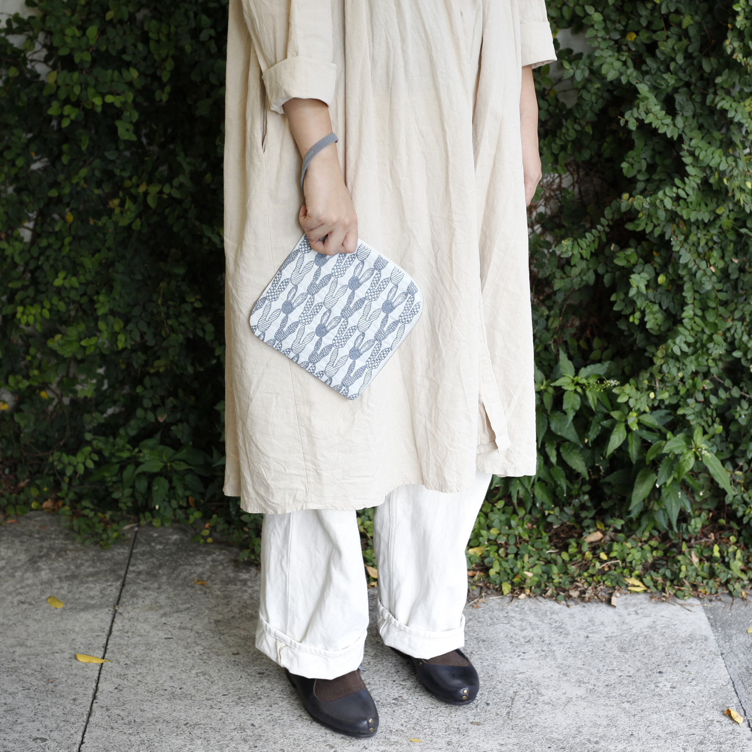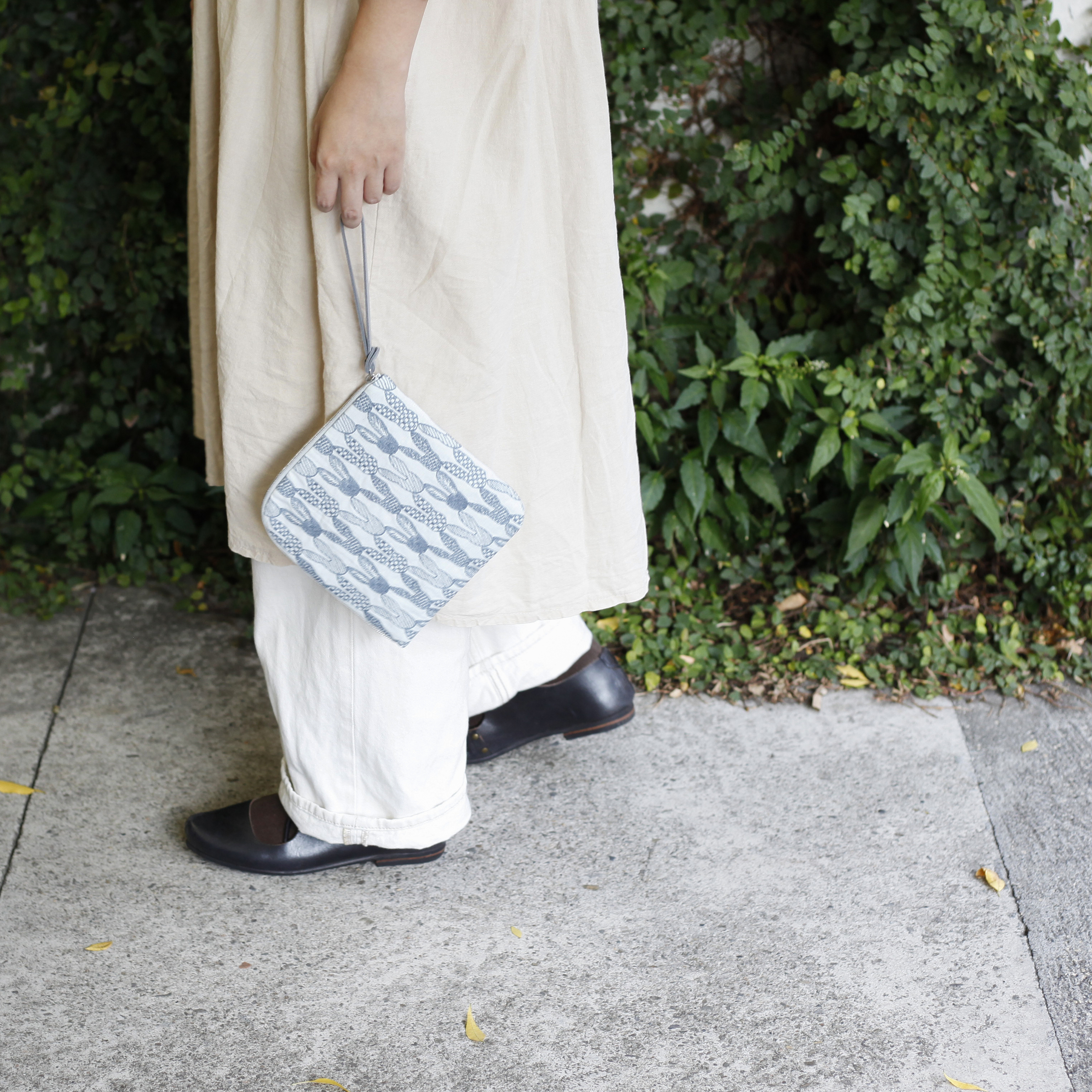 像旅行一樣,各種各樣的圖案在布料上延展擴散。正方形的袋型可以放進小包中。