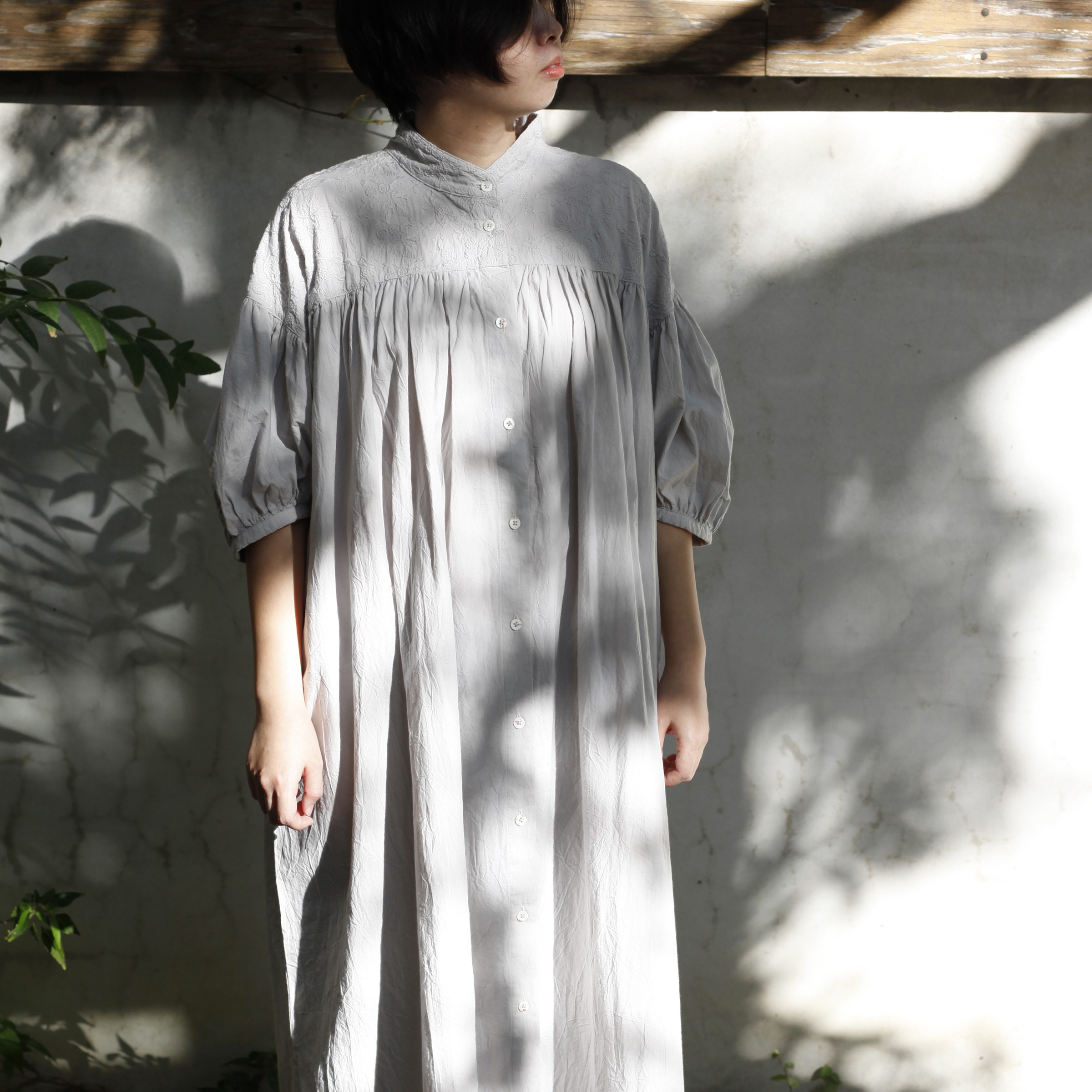 T-141LPs 有摺罩衫五分袖連衣裙(刺繡淺灰)
