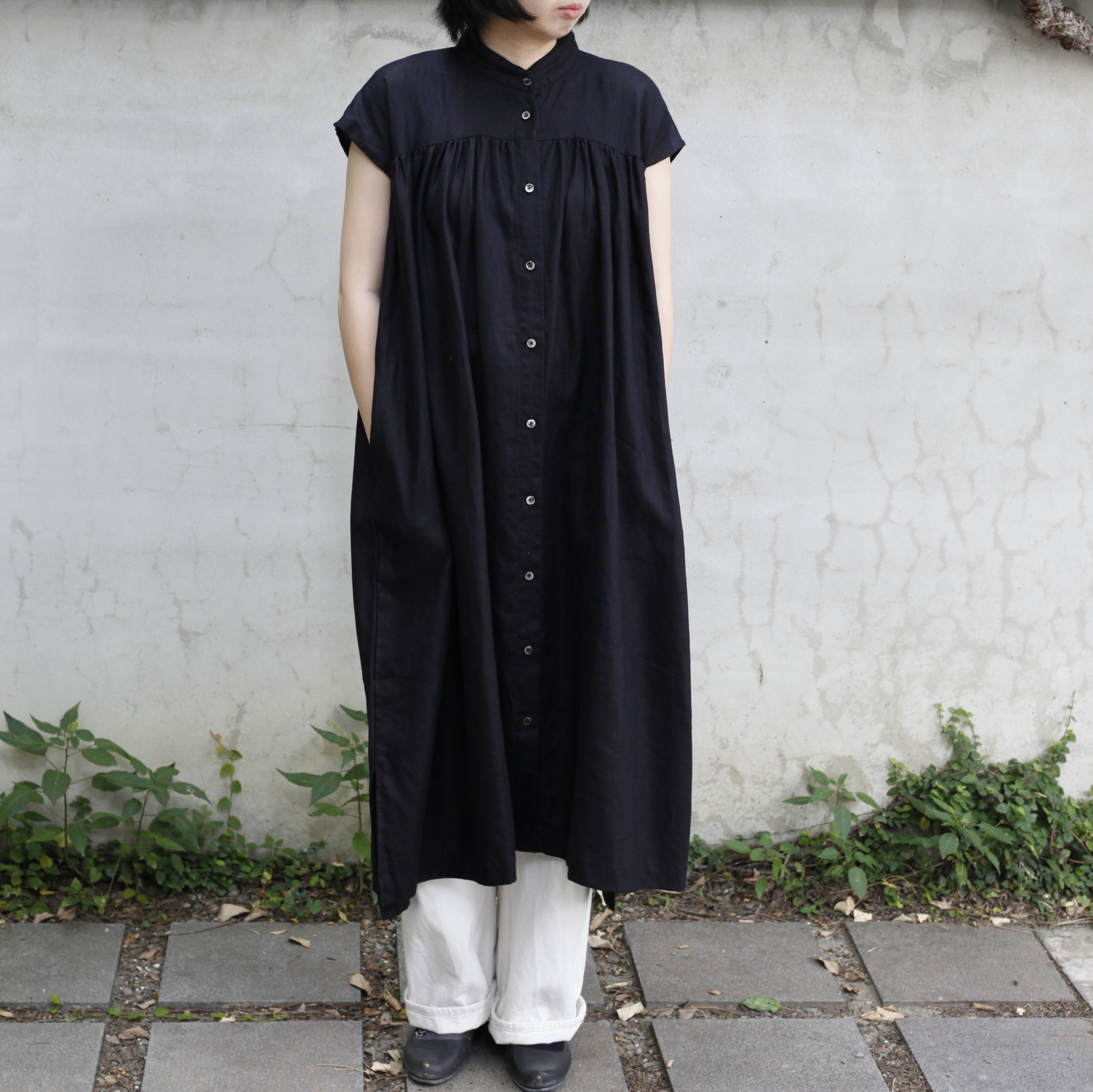 T-141Lpo立領縮褶法袖OP(YW)