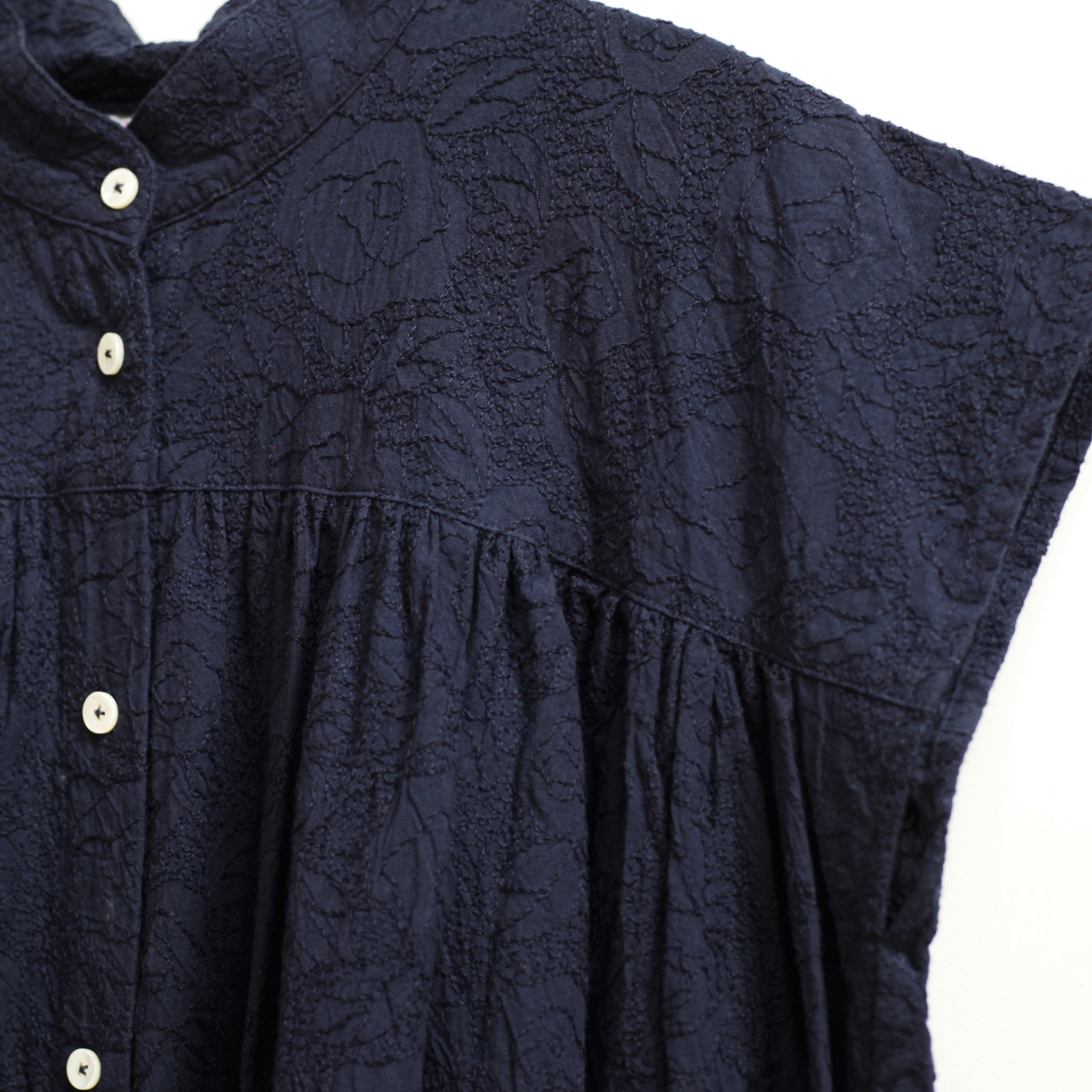 T-141LpoH立領縮褶法袖OP刺繡(NV)