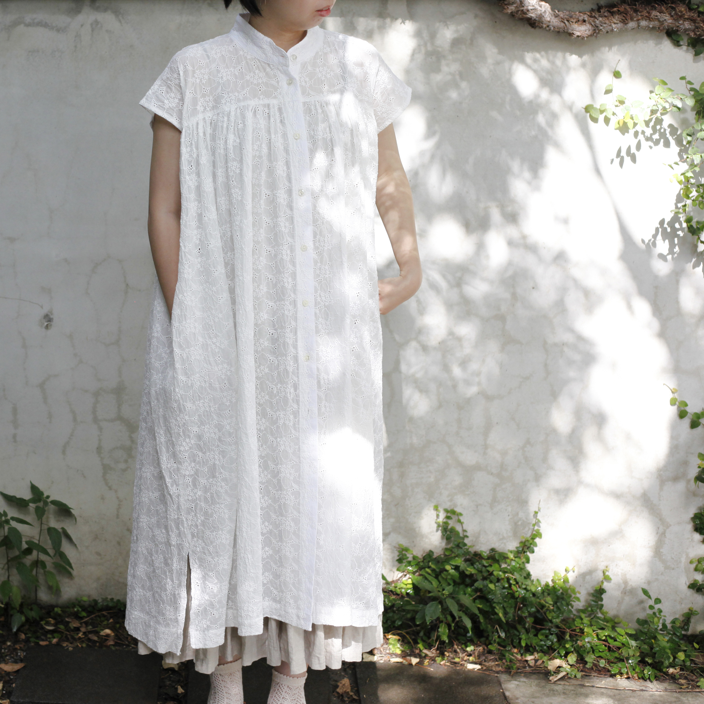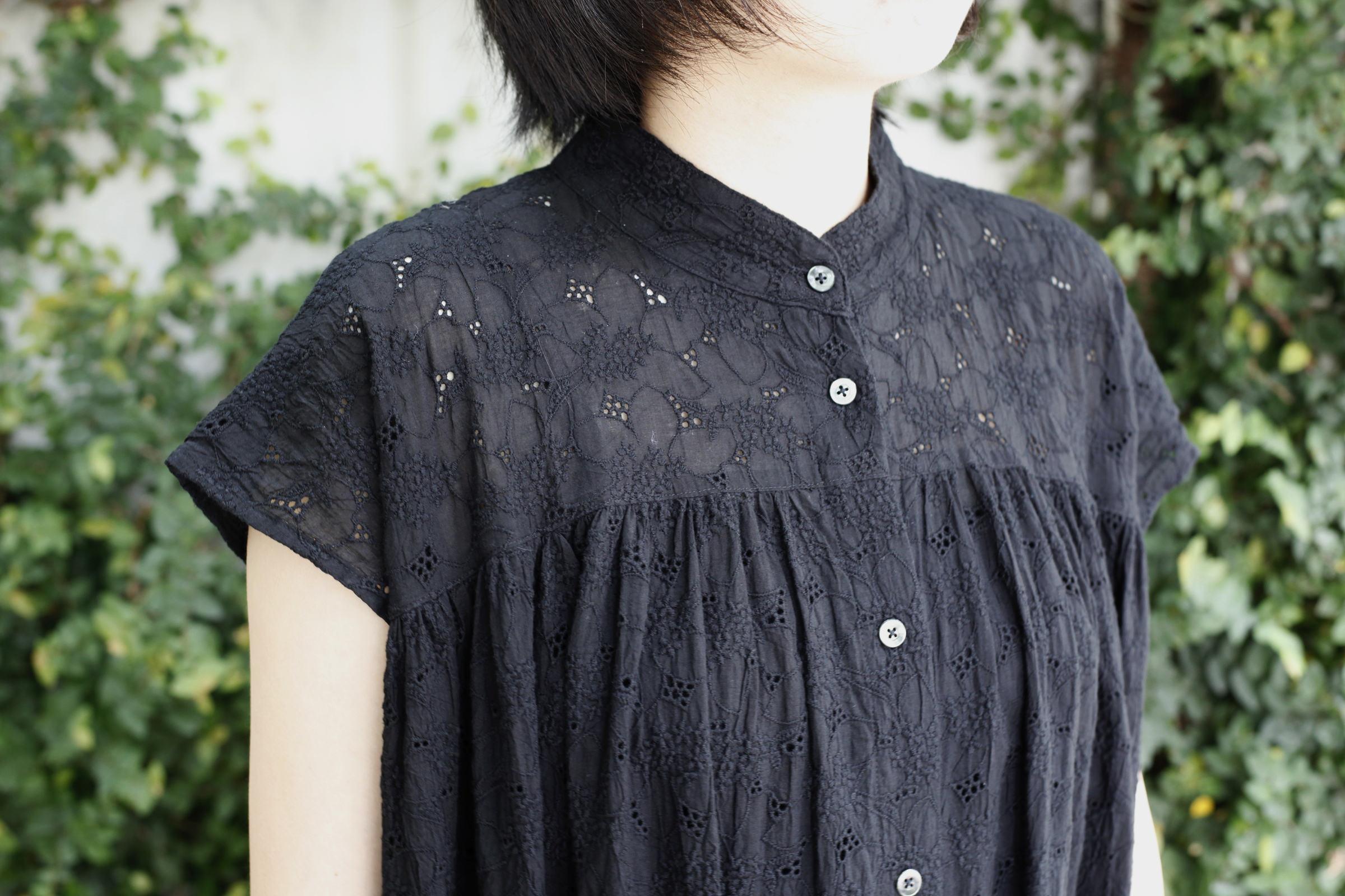 Sa-Rah_T-141LpoH 立領縮褶法袖OP刺繡