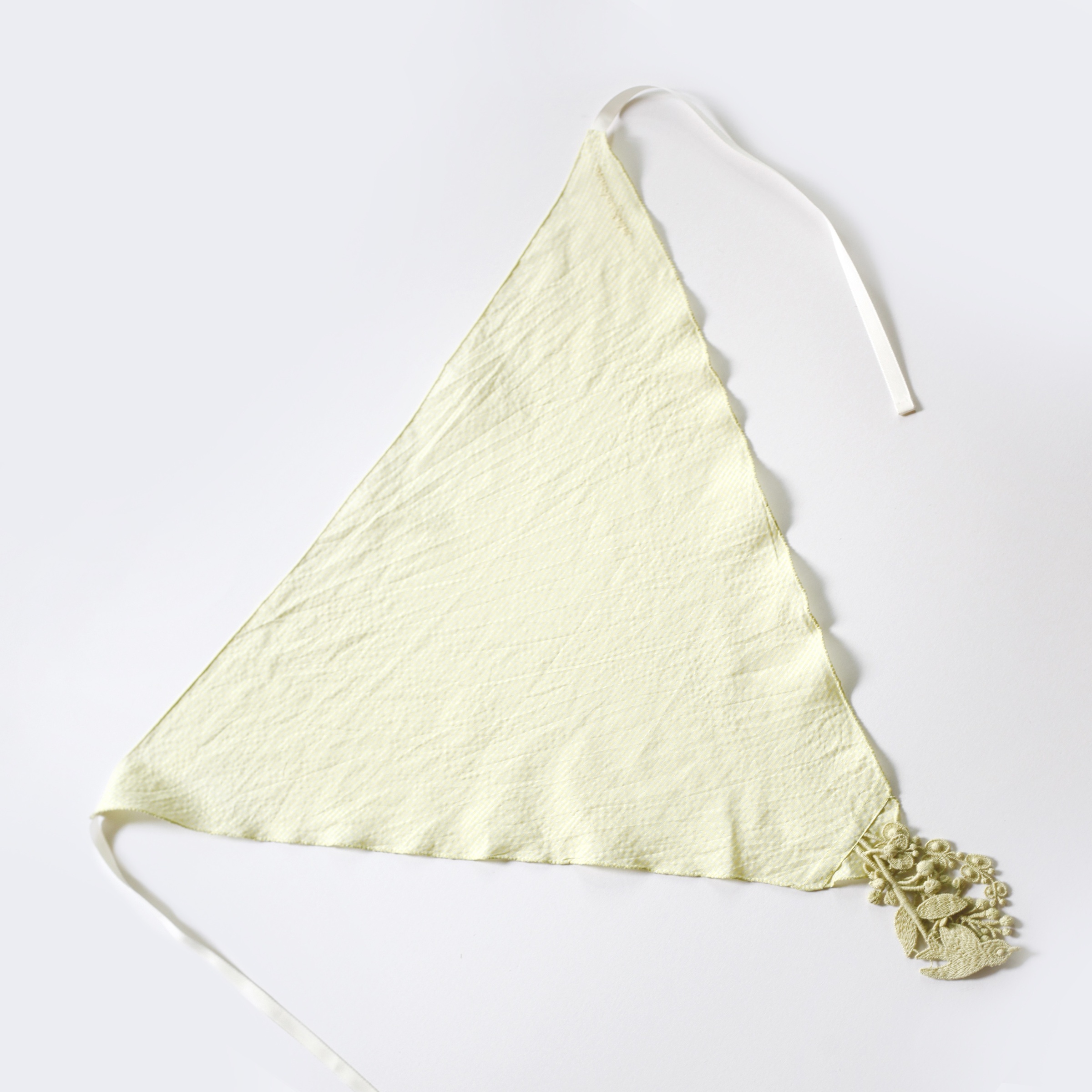 頭巾由柔軟的絲棉布料製成。在三角形的角落添加了"forest parade"繡片。它可以用作簡單風格的強調。